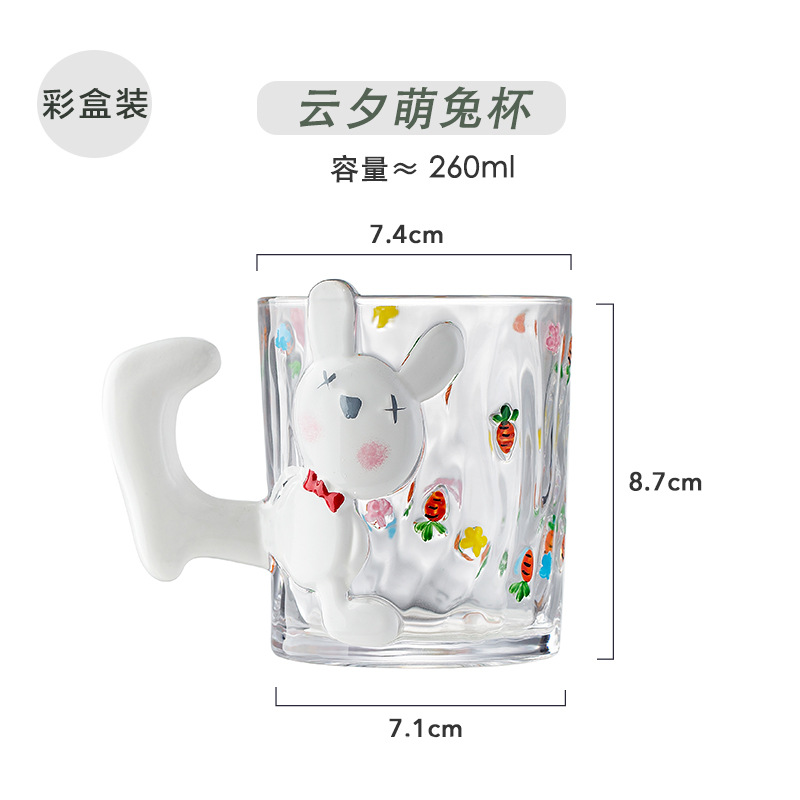 Produktname: Süßes Kaninchen und niedliche Katzen-Cartoon mit hohem Wert Kristallglas Tasse