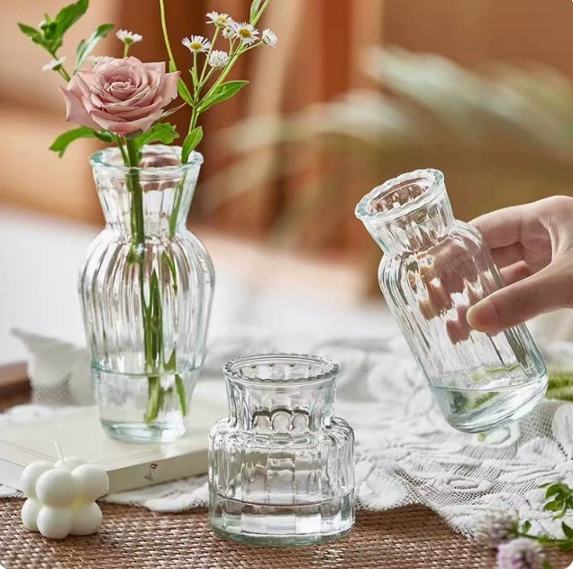 Luxuriöse transparente Vase aus Glas mit Retro-Prägung