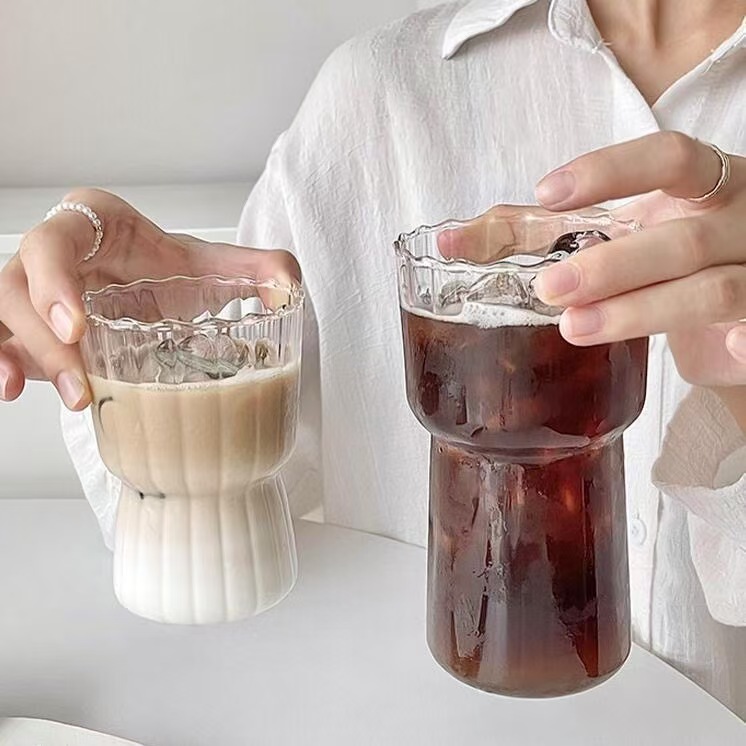 Produktname: transparent vertikales Muster Taillentanwältiger Glasbecher