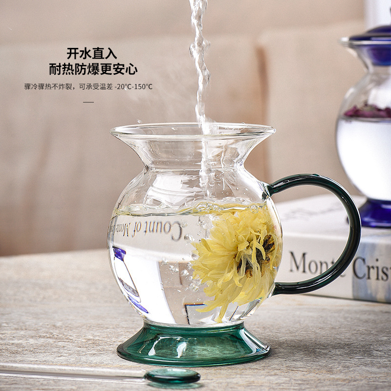 Marke: INTOWALK Produktname: Vintage Spucknapf-Glasbecher Material: Glas mit hohem Borosilikatgehalt Handwerkskunst: handgefertigte Handwerkskunst Größe: Durchmesser: 9 cm, Höhe 14 cm, Bodendurchmesser 8 cm Kapazität: 400 ml Farbe: Smaragdgrün/Blau/Bernstein Detail: 1. Lustiges Design in Spucknapfform, Nostalgie- und Retro-Stil, das Gerät basiert auf der Schönheit der Dinge, das Temperament ist perfekt und die Kreativität ist perfekt 2. Der Becher besteht aus Glas mit hohem Borosilikatgehalt, hat eine runde Öffnung und eine zarte Haptik. Es wird bei hoher Temperatur gebrannt und hat eine schöne Farbe. 3. Es wird direkt kochendes Wasser eingefüllt, es ist hitzebeständig und explosionsgeschützt für mehr Sicherheit. Es platzt nicht, wenn es plötzlich abgekühlt oder erhitzt wird, und hält Temperaturunterschieden von -20 °C bis 150 °C stand. 4. Abgedecktes Design, verbreiterter Griff für mehr Sicherheit, breites Griffdesign, angenehm zu halten Lieferkette der E-Commerce-Plattform für Glashausprodukte von INTOWALK